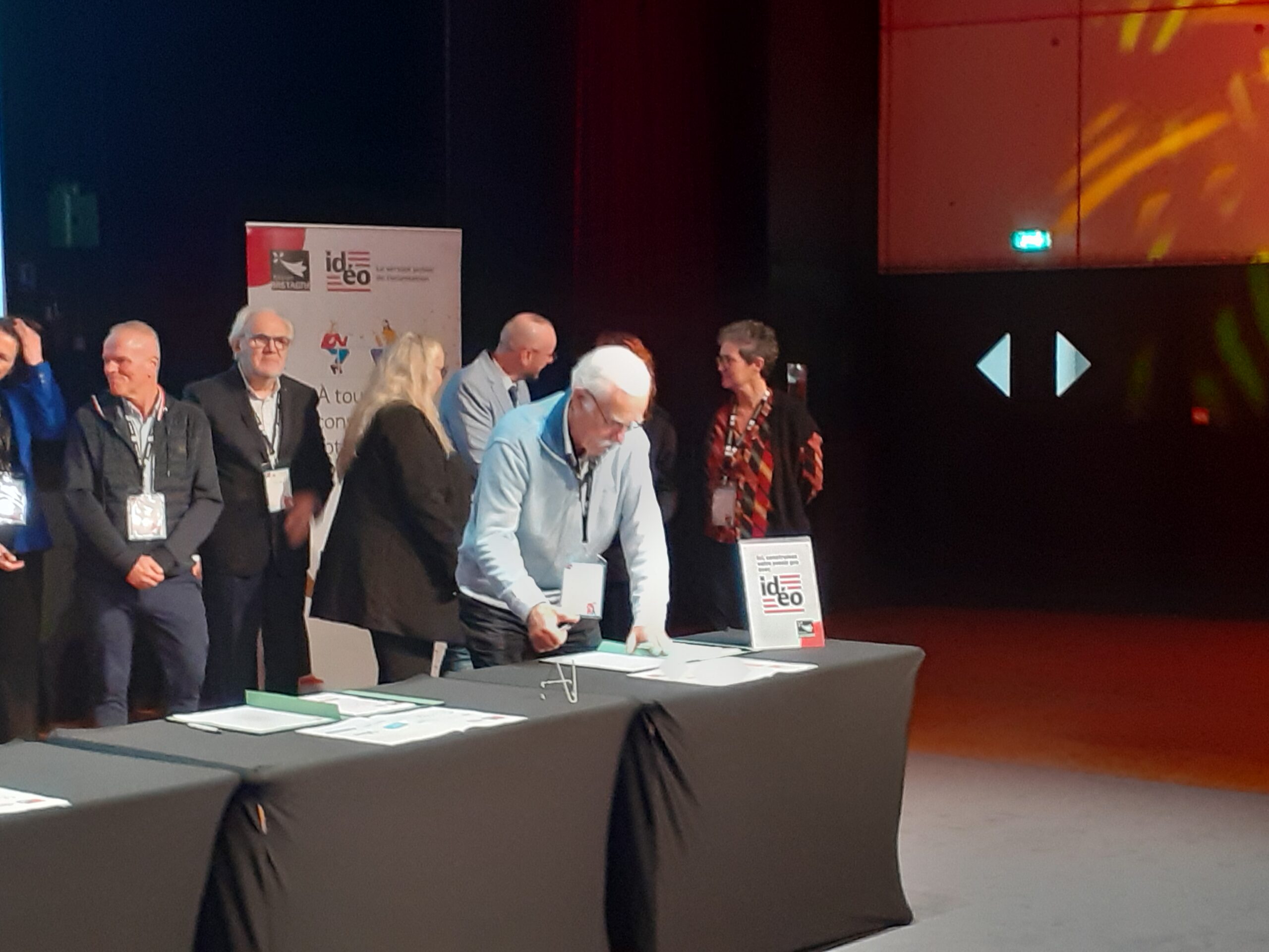 📍 Ce jour à Lorient au Palais des Congrès de Lorient Bretagne Sud 🖌️ de la charte Idéo, en présence de Madame Forough Dadkhah, vice-présidente en charge de l’orientation, la formation et l’emploi à la Région Bretagne, Madame Helene Insel-Zajdela, Rectrice de la région académique Bretagne, @Monsieur Stéphane BIDEAU, directeur régional adjoint de France Travail et Monsieur @David Brehe, Président de Transitions Pro Bretagne.