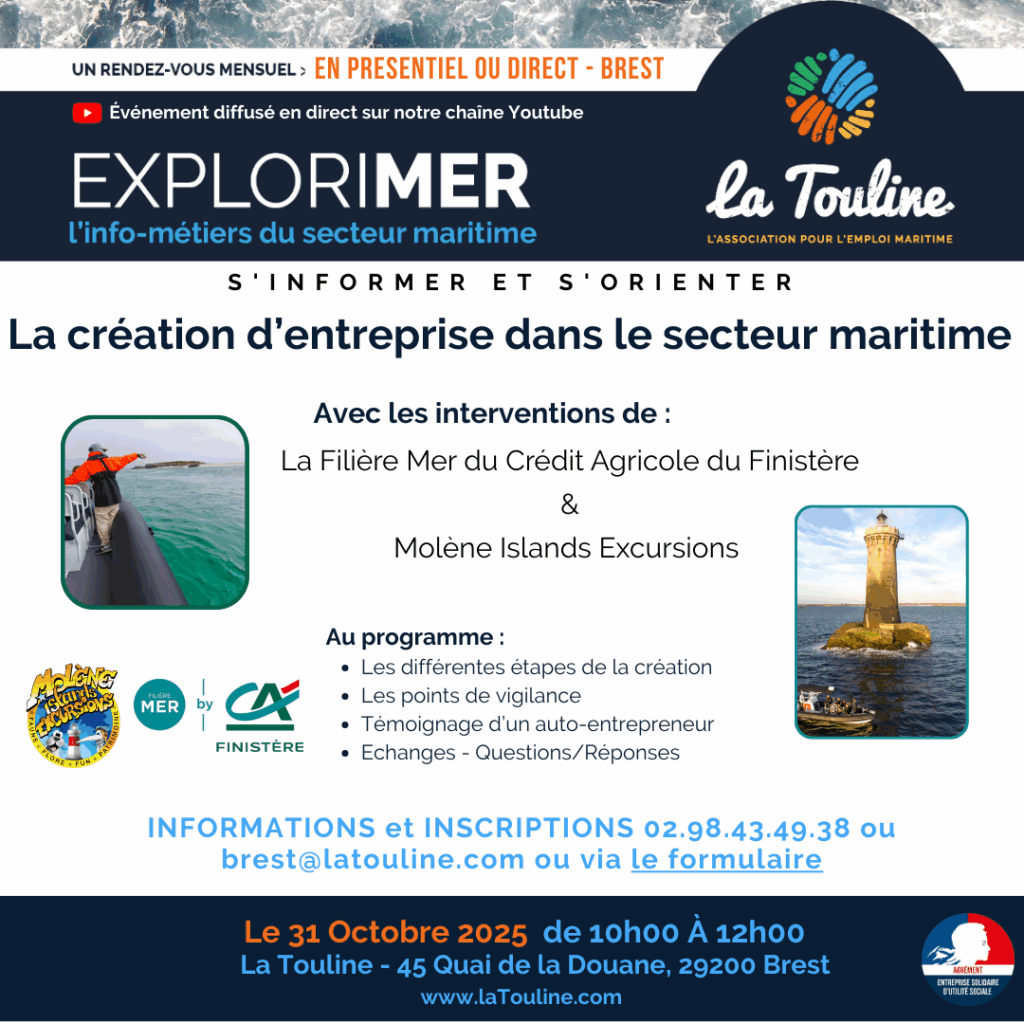 Le prochain rendez-vous ExploriMer portera sur la création d’entreprise dans le secteur maritime.